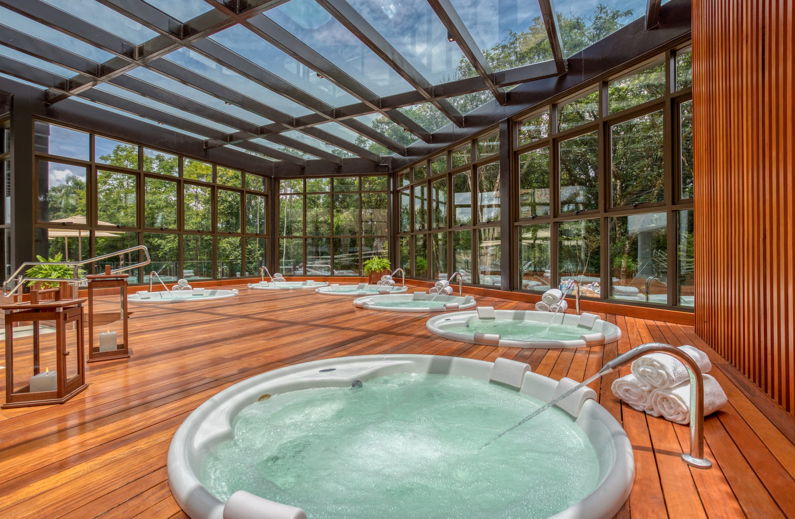 Inspirado nos resorts de inverno da Europa, o Wyndham Gramado é o único hotel da cidade com águas termais, cuja temperatura varia de 33°C a 36°C – um diferencial relevante para o clima ameno da região. Além das três piscinas (interna, externa e infantil) e seis jacuzzis com essas águas ricas em minerais, o resort também oferece sauna, spa, academia, kids club, arena gamer e restaurante com café da manhã típico da Serra Gaúcha.